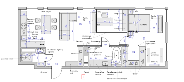 Полная перепланировка и замена всех инженерных систем: электрики, сантехники, полов и стен. Создаем новое пространство на том же месте, для лучшего качества жизни.